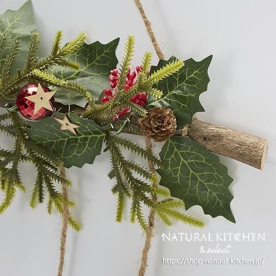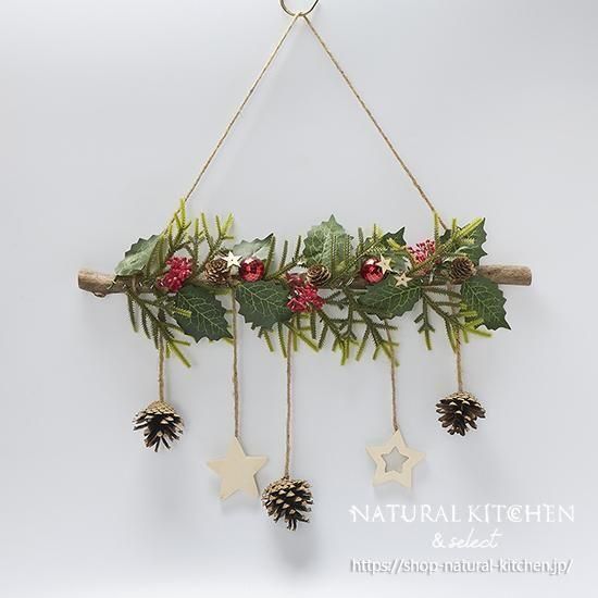 素材 | ハシバミの枝、松ぼっくり、プラスチック、MDF、麻紐 |