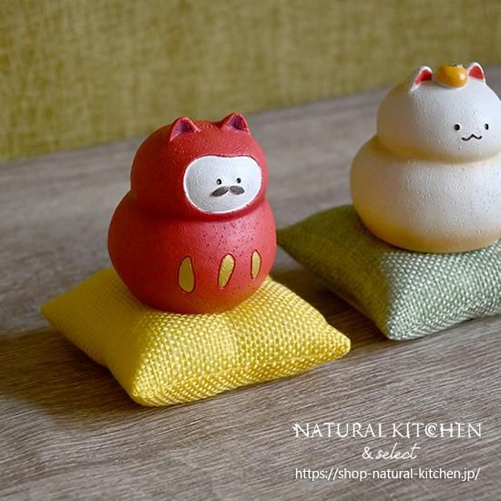 WEB限定販売のだるまねこ鏡餅ねこオブジェを乗せて一足早いお正月インテリアをお楽しみいただけますよ!